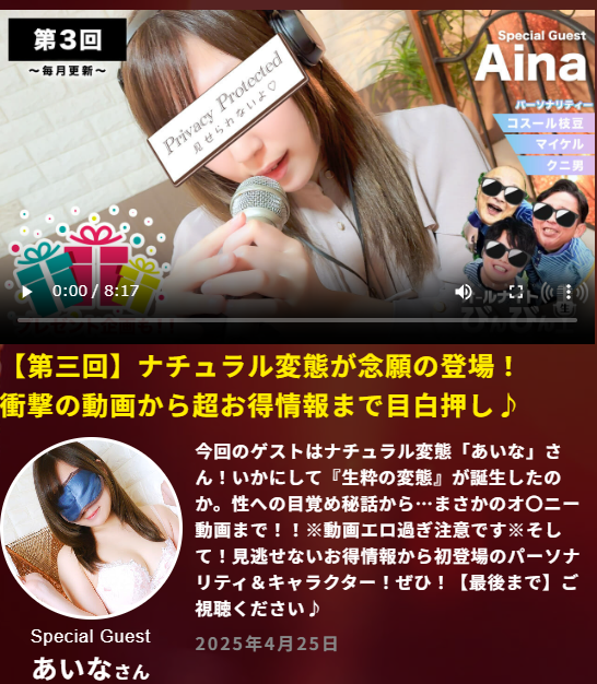 キャストさんを招いてラジオ形式で「生」インタビューしちゃう新企画!働いている女性って本当にスケベなの?風俗店の男子スタッフってどんな人?などなど聴けば聴くほど見えてくるビンビン伝説!女性の情報は勿論ですが、僕たちがどんな気持ちで風俗店をやっているか、風俗がどんなに楽しい所か、伝わってくれればとても嬉しいです。←真面目か(笑)