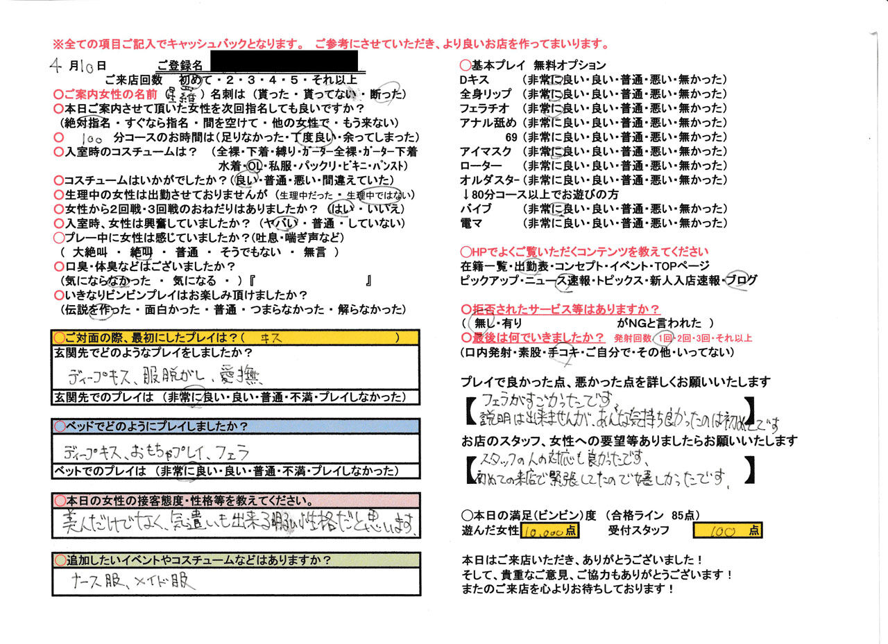 『完全業界未経験』×『スタイル抜群』で落ち着いた雰囲気で”イイ女”の匂いがプンプン漂ってきます( ̄▽ ̄)ニヤリ 入店のキッカケは…刺激欲しさ!普通の風俗ではなく、ちょっと変わったお店でエッチな事を楽しみかったそうです(笑)(ありがとうございます)とにかくスタイルが抜群でこの身体は間違いなく勃起不可避!Fカップの美巨乳にキュッと締まったクビレが堪らん♪また、身体だけではなく体質もスケベで…なんとッ!「乳首舐め」でイケちゃう身体なんだとか( ̄▽ ̄)ニヤリ←楽チンでイイネ!自分から責める事も好きらしいので…玄関先でスタイルを楽しみイカせて…ベッド上でもイカせて…最後は積極的に求めてくれる…この流れ、絶対にビンビン確定です!!ぜひ!この逸材!スケベな身体にスケベな体質!存分にお楽しみください♪