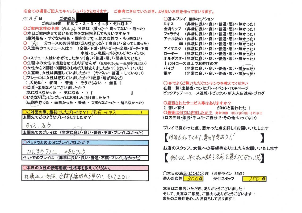 【完全業界未経験】で入店してから…感度の良さがドンドン上がってしまった!!!清楚で恥ずかしがり屋のM女は…性癖がビンビン伝説とマッチし過ぎています( ̄∀ ̄)ニヤリ スタイル抜群×色白美BODYで…こんなに清楚で綺麗な方が変態だと…我々男性はビンビンにならざるを得ません(笑) まずは何より「性欲が強い」!週7オ〇ニーは当たり前で…それはずっと変わらないルーティン♪優しく…じっとり…ねっとり…責めてあげるとアエギ声と痙攣が止まらなくなって大絶叫( ̄∀ ̄)ニヤリ フェザータッチで全身触ってあげれば…見事なまでに!【全身が性感帯】と化してしまう変態です(笑)※オマ〇コ研究の際は”四つん這い”のポーズがオススメです♪また、大好物の電マを当てれば…ずっと!!!何回でもイケちゃうそうです!!! 焦らしたい方、イカせたい方にオススメの1名!ぜひお遊びされてみてください!!