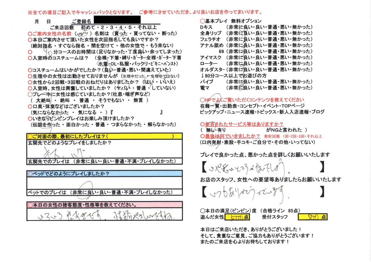 ↓愛嬌・感度が素晴らしい『500点』