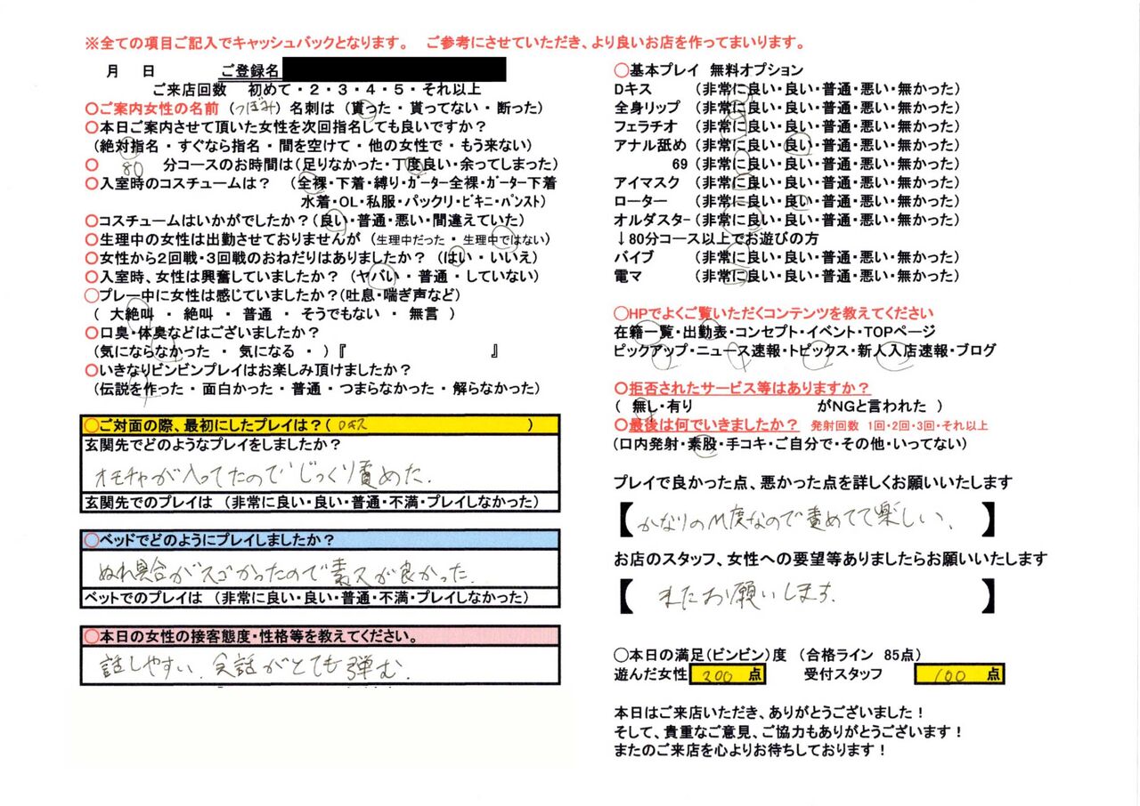 『スタイル抜群』×『感度抜群』のスレンダー美BODY!ずっとニコニコしていて…純粋に可愛くて良い娘(笑)肌も色白でスベスベの美肌♪それでいて…感度も良いときたら…遊ばない理由が見つかりませんナ( ̄▽ ̄)ニヤリ と・に・か・く!凹凸がしっかりとした女性らしいボディでスタイルが抜群にイイ!!おっぱいもプルンッとしたEカップで男性の手にプニュッとジャストフィット♪性感帯は『クリ』でオモチャ系も好き!そして、攻略しやすいのは…やっぱり『電マ』!優しく当てるだけで、スグにイッちゃうらしいです!!また、SもMもどっちもいけまして…『終始楽しそうにニコニコしてプレイしてるね』と男性から喜ばれる事が多いんだとか♪※オマ〇コ研究のイベント説明をしたらすっごく笑ってましたw※ぜひ!スタイル・愛嬌抜群のオンナで!ビンビンになってください♪